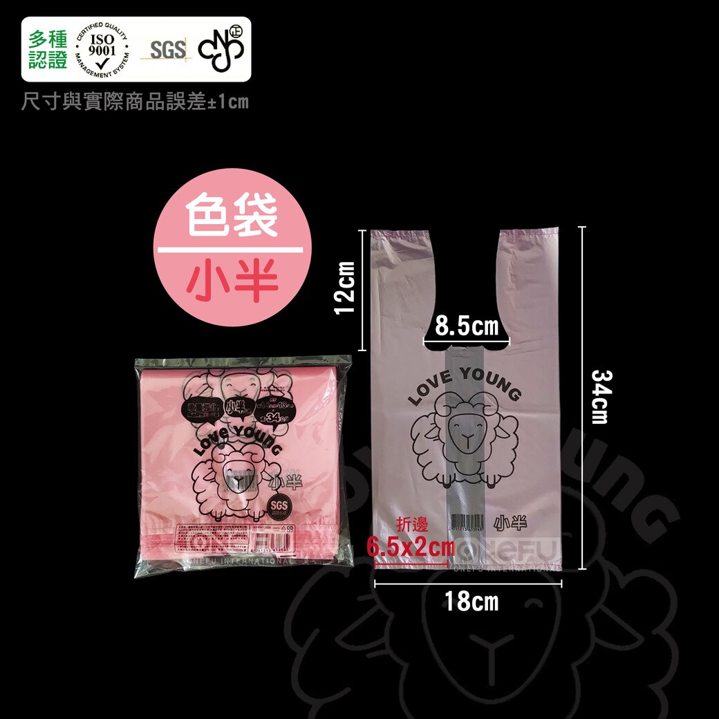 - 品名:綿羊全色袋-小半斤(80包),單包入數約55個 - 尺寸: 高34 cm x 寬18 cm,折邊6.5 x 2 cm(尺寸手工測量,誤差1 cm 左右為正常範圍,介意者慎購)