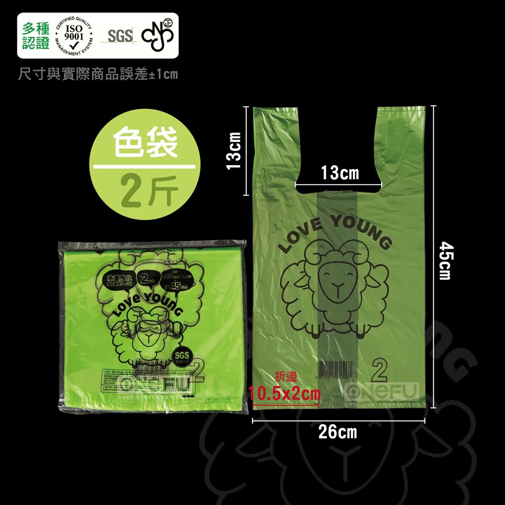 - 品名:綿羊全色袋-2斤(80包),單包入數約24個 - 尺寸: 高45 cm x 寬26 cm,折邊10.5 x 2 cm(尺寸手工測量,誤差1 cm 左右為正常範圍,介意者慎購)